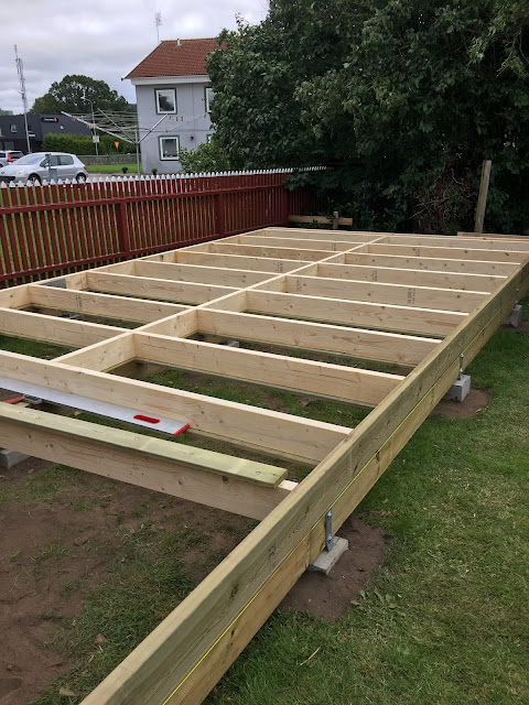 Som jag skrivit tidigare är maken fullt upptagen med att bygga, han bygger en ateljé till mig där jag skall ha min stora, men också min lilla vävstol och plats för minst fyra symaskiner behöver jag ha. Det är som sagt långt kvar och vi får se om det blir klart till nästa höst, han arbetar ju också,så det är lite kvälls och helgarbete. det som blir extra bra när det blir klart är att vi kan fixa ordning lite på övervåningen. För nu när alla ungdomar flyttat ut är det svårt att få till det där uppe och i den stora hallen har jag alla mina sy och vävsaker. Det kommer att bli så bra när det är klart.